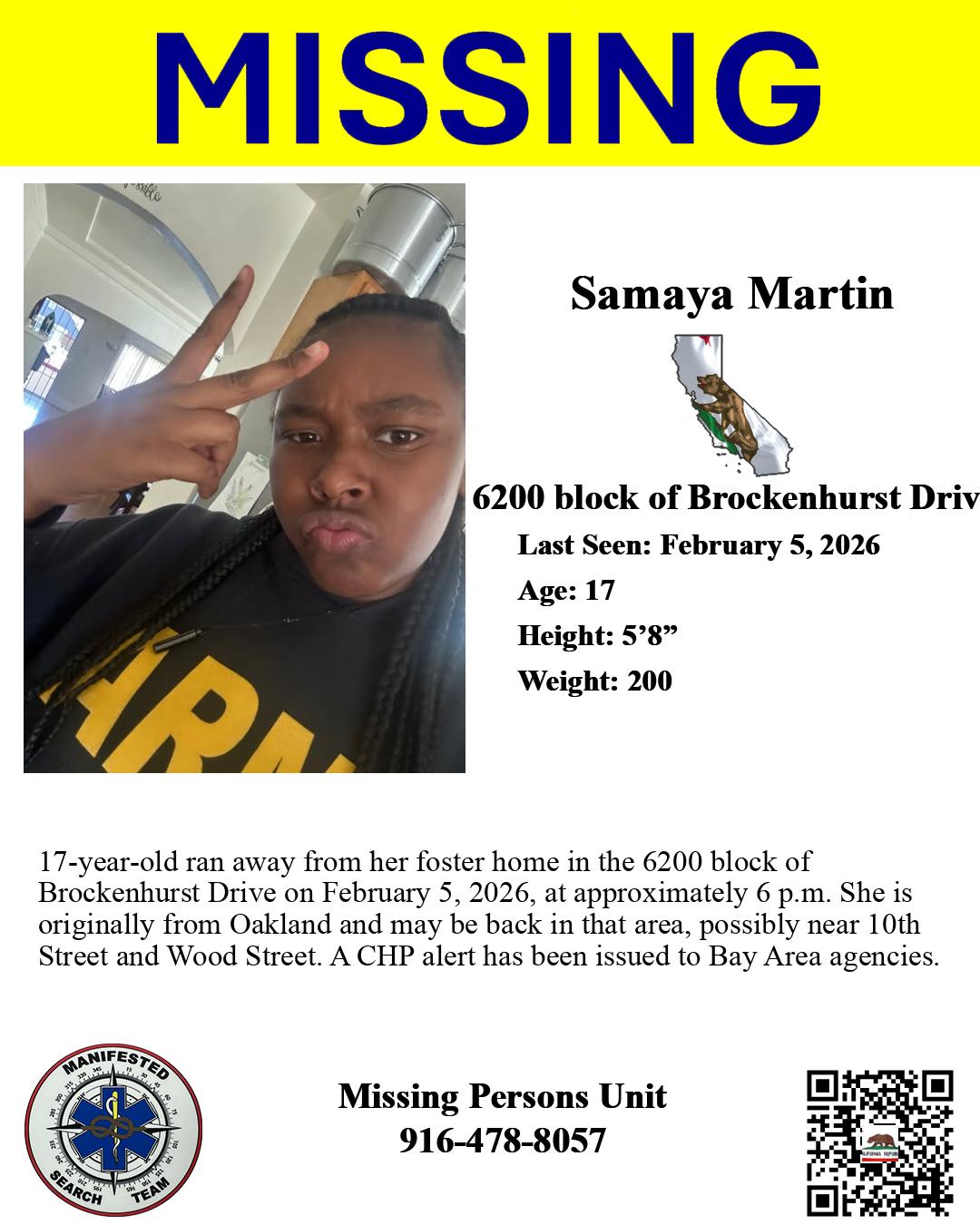 | Samaya Martin | | 17 | 6200 block of Brockenhurst Drive | February 5, 2026 | February 27, 2026 7:59 am |