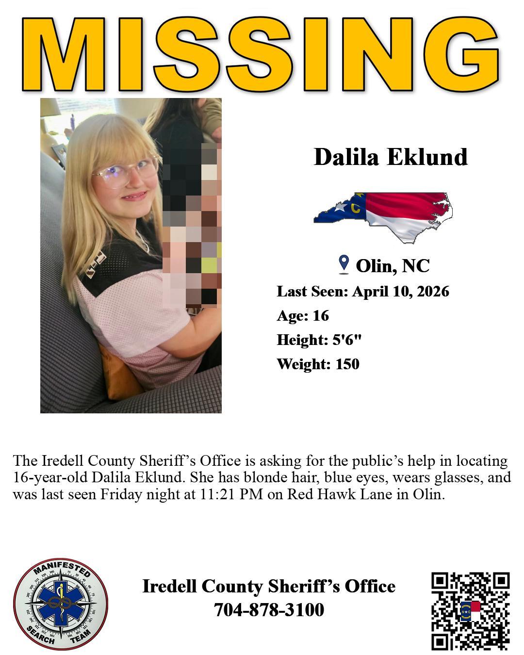 | Dalila Eklund | | 16 | Olin, NC | April 10, 2026 | April 13, 2026 5:39 pm |