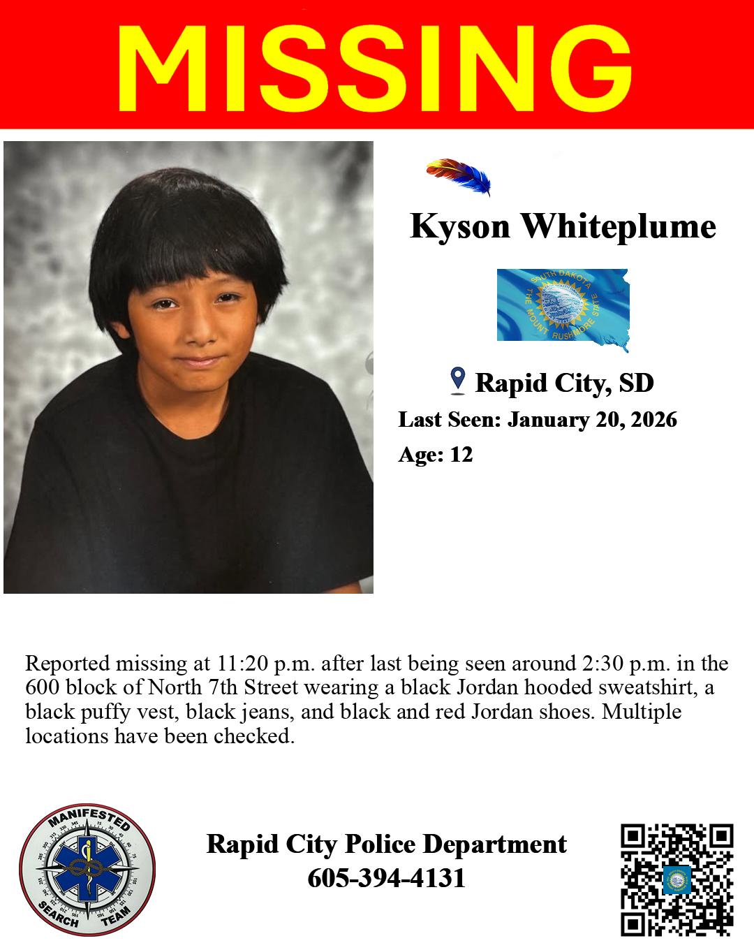 | Kyson Whiteplume | | 12 | Rapid City, SD | January 20, 2026 | January 20, 2026 2:59 pm |