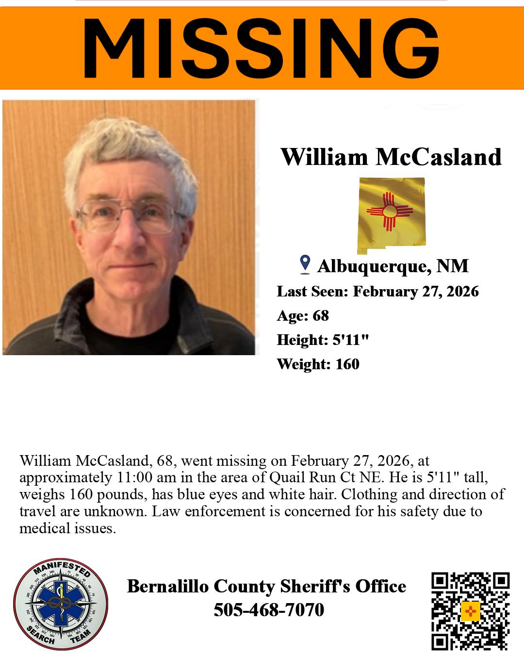 | William McCasland | | 68 | Albuquerque, NM | February 27, 2026 | March 2, 2026 6:27 pm |