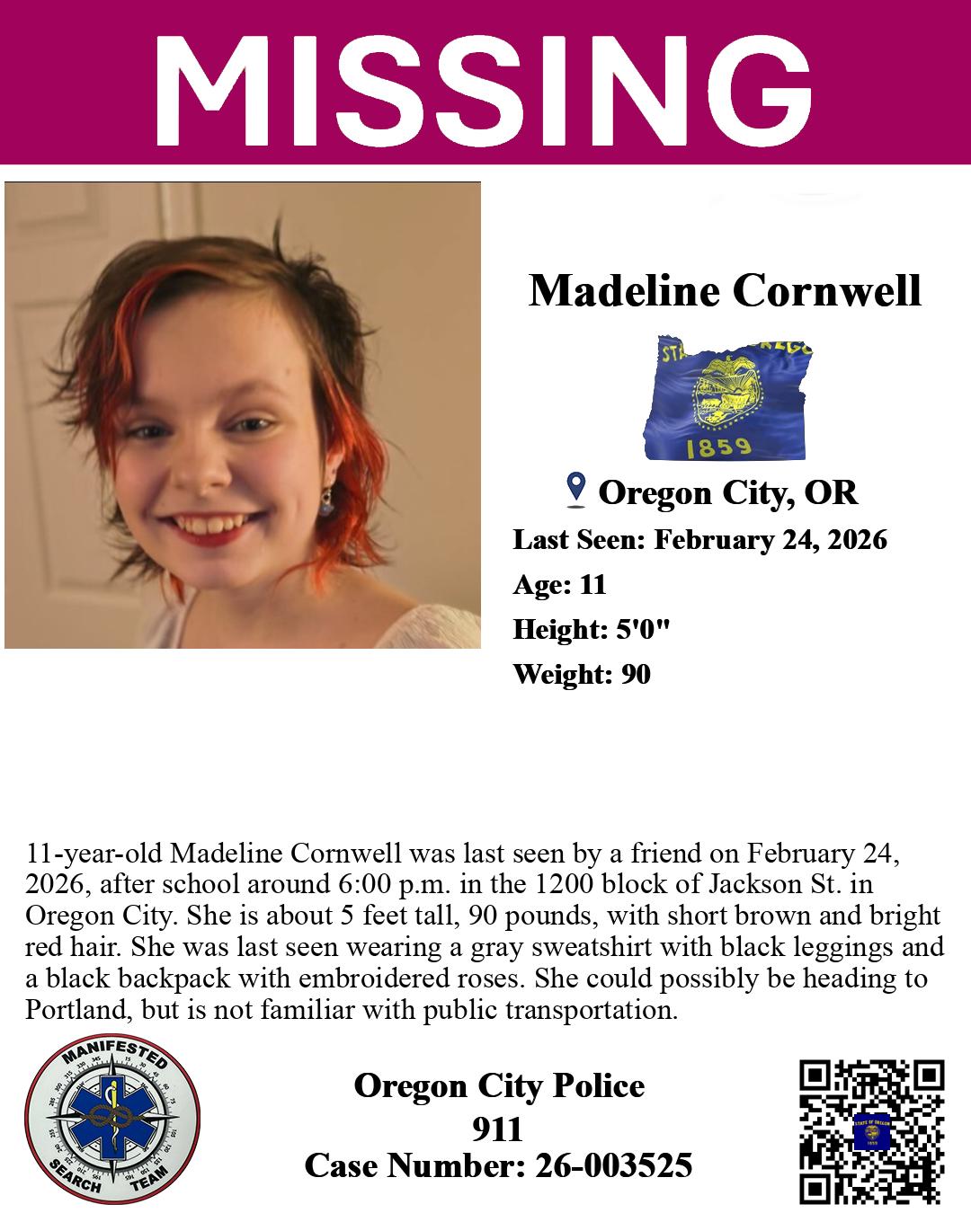 Oregon is very transparent with missing people. Requiring Missing People to be entered into their public state database within 12 hours, per ORS 146.181.